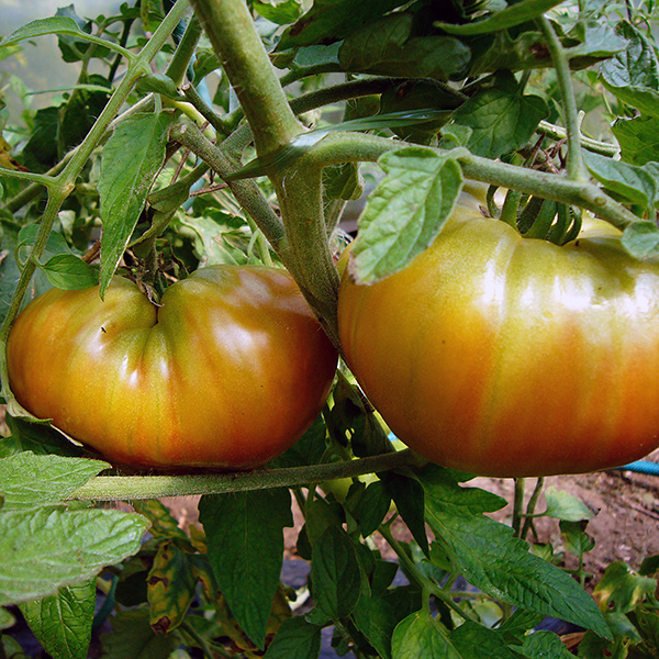 Aus der gelb-orange-rot marmorierten Ananastomate wurde in Belgien die Sorte Ananas Noire gezüchtet, was so viel wie Schwarze Ananas bedeutet. Die Ananas Noire tägt mittelfrüh, recht große, fleischige 200-300 Gramm schwere Früchte, die rot-grün-braun mamoriert und gefurcht sind. Diese am besten mehrtriebig gezogene Fleischtomate sollte rechtzeitig geerntet und verarbeitet werden, da sie sonst recht schnell matschig und unappetitlich werden kann. Rechtzeitig geernet entfaltet sie ihr volles, würziges und zu gleich fruchtig-süßes, saftiges Aroma am besten. Ob frisch genossen oder zu einer leckeren Soße verkocht, die Ananas Noire ist in der Küche sehr vielseitig einsetzbar. Wir lieben sie in Scheiben geschnitten auf frischem Brot und Sandwiches.