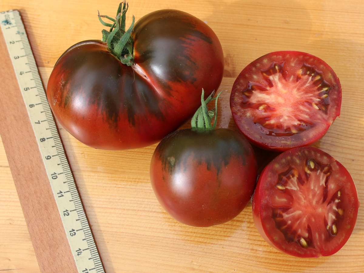 Die ebenfalls aus Russland stammende Zigan wächst bis über 200cm hoch und verspricht eine mittelspäte dafür aber eine lange und ertragreiche Ernte. Die 50-200 Gramm schweren Früchte sind saftig, fruchtig-süß, aromavoll mit wenig Säure und reifen von grün zu einem tiefen kaminrot ab. Gelegentlich neigen sie wegen ihrer Dünnhäutigkeit zum Platzen.