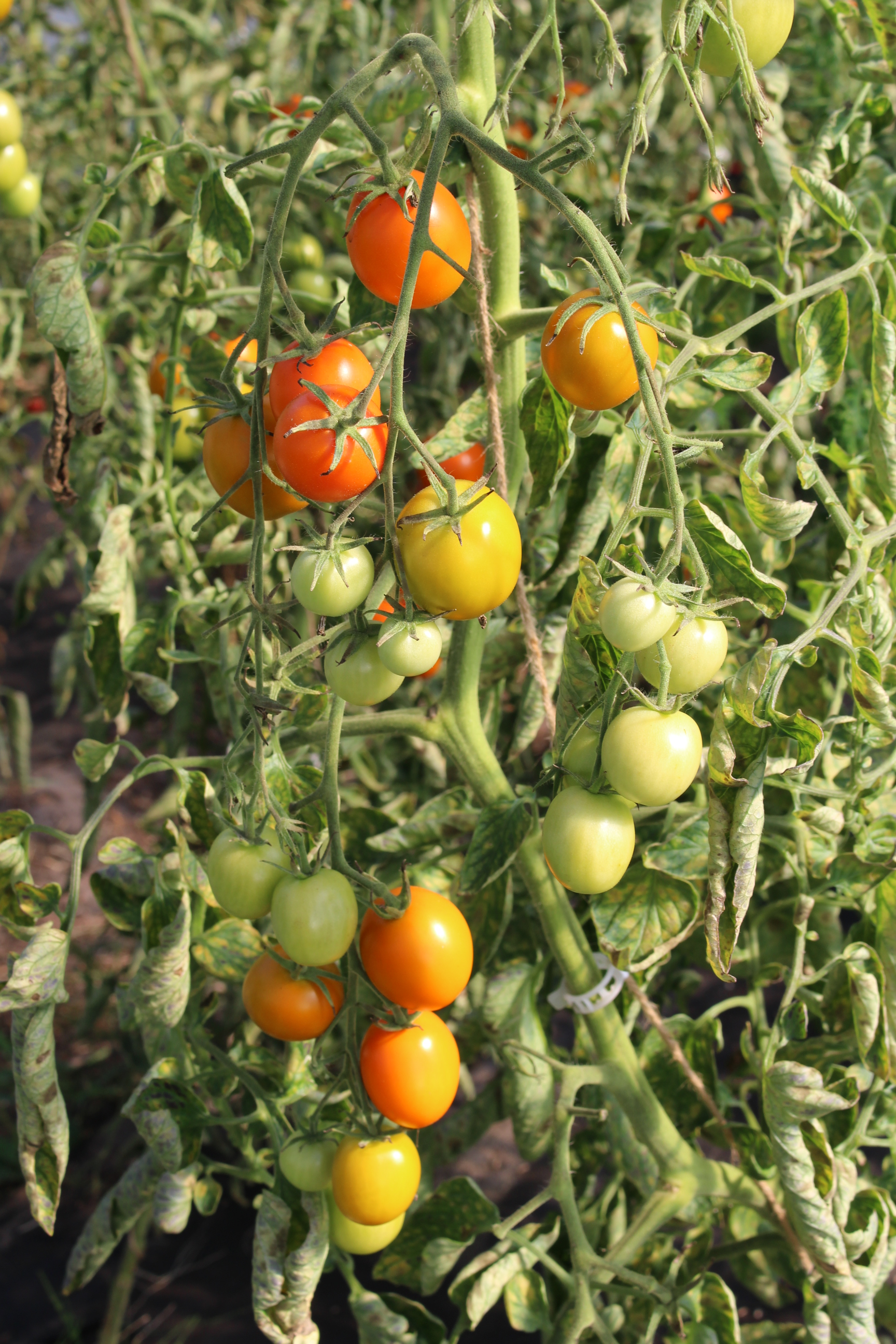 Die Tomate Auriga, gehört wie viele gelbe Typen zu den früh reifenden Sorten und hat darüber hinaus auch ein besonders beharrliches und ausdauerndes Wesen. Trotz des Sonnenmangels und der kalten Nächte in der ersten Julihälfte 2015, zeigte die erste Frucht schon am 12. Juli Farbe. Die Auriga reift dann von zitronig, über sattes Sonnengelb zu leuchtendem Orange in der Vollreife. Die Abreife verläuft in 5-7 Tagen dabei recht entspannt, so dass man einige frühe Früchte naschen kann und andere noch an der Pflanze belässt. Häufig und vor allem bei roten Sorten, weicht die Vorfreude auf die ersten Früchte schnell geschmacklicher Ernüchterung. Anders die Auriga, die uns 2015 von Anfang an und bis weit in den Oktober mit schönen, gesunden und vor allem leckeren Früchten beschenkte. Früh geerntet führt sie noch wenig Zucker und überrascht mit einem fast würzigen Aroma, das schon an grüne Typen erinnert. Voll ausgereift schmeckt die Auriga aromatisch-süß und hält sich dann auch erstaunlich lange an der Pflanze.