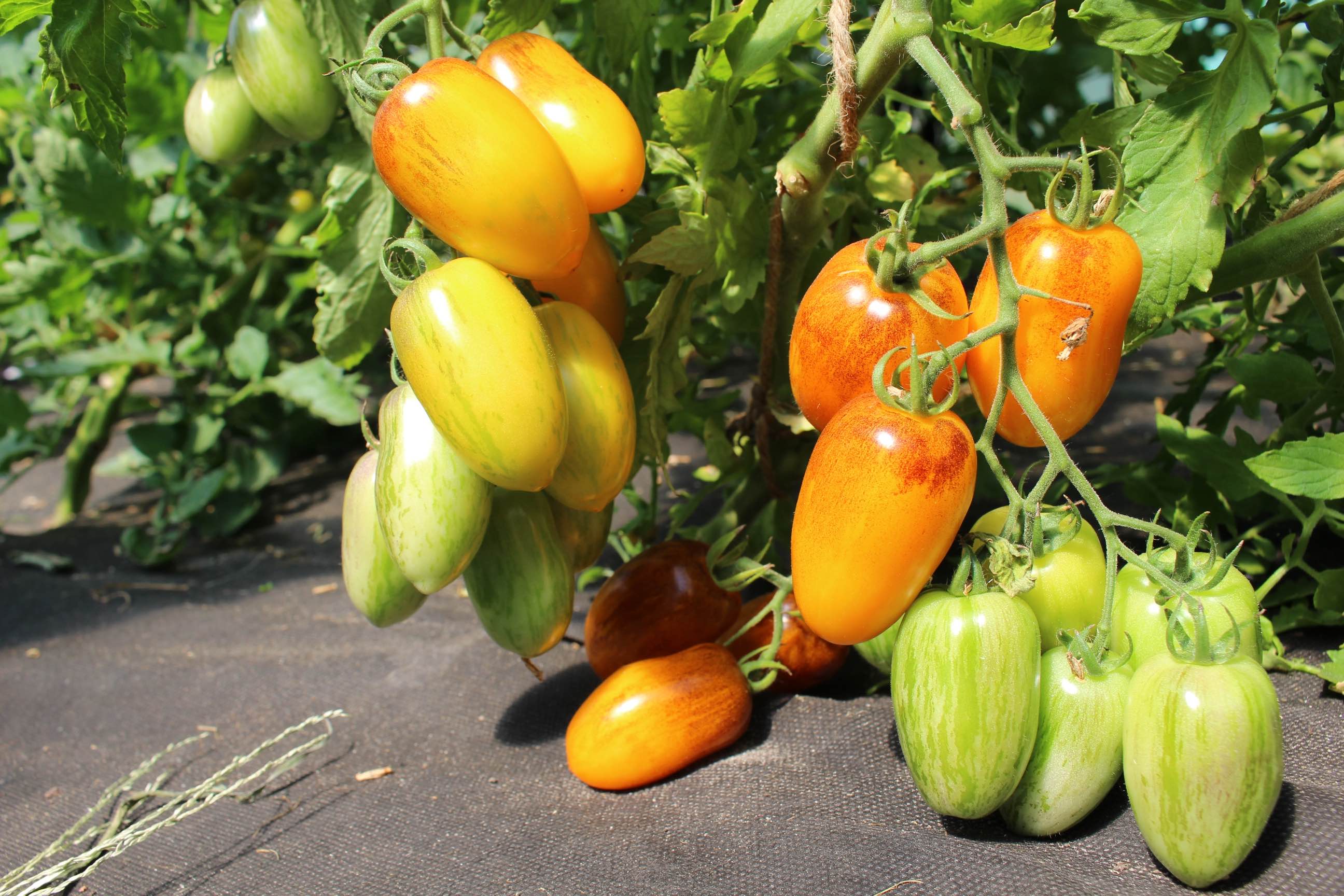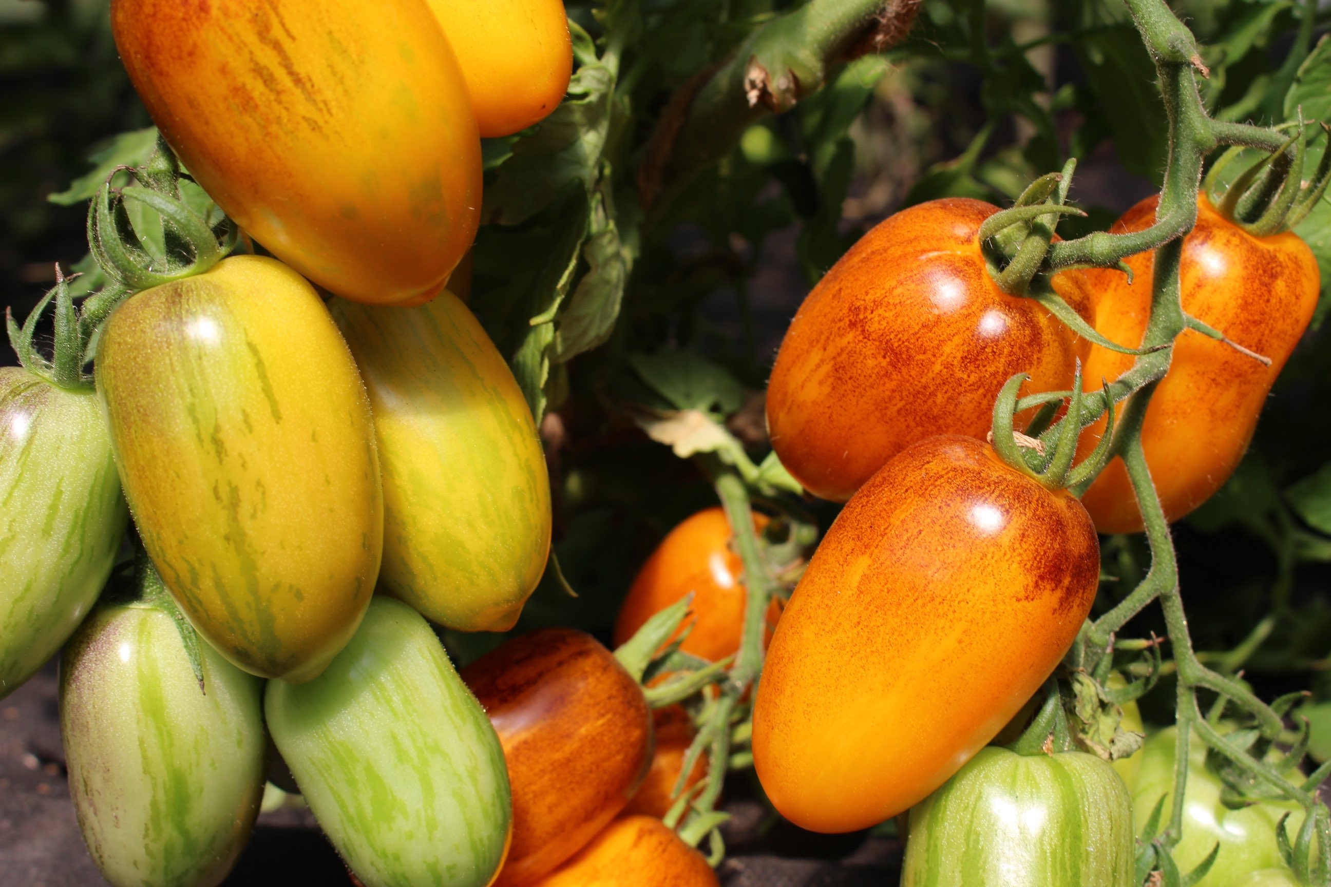 Recht neue Sorte kreiert von Brad Gates, USA. Kreuzung zwischen Brad's Atomic Grape und Roma Orange. Frucht etwa 30 Gramm, pflaumenartig mit ovaler Tendenz und schwach ausgeprägten Spitzen. Orange-gelbe Haut mit Einstreifungen und Spuren von Anthocyanen, am deutlichsten an den Schultern sichtbar. Schön festes, pastöses Fruchtfleisch mit süßem Aroma. Sehr gute Haltbarkeit ohne Geschmacksverlust. Halbdeterminierter Wuchs bis 140-160cm. Reichliche Produktion in der Zwischensaison.