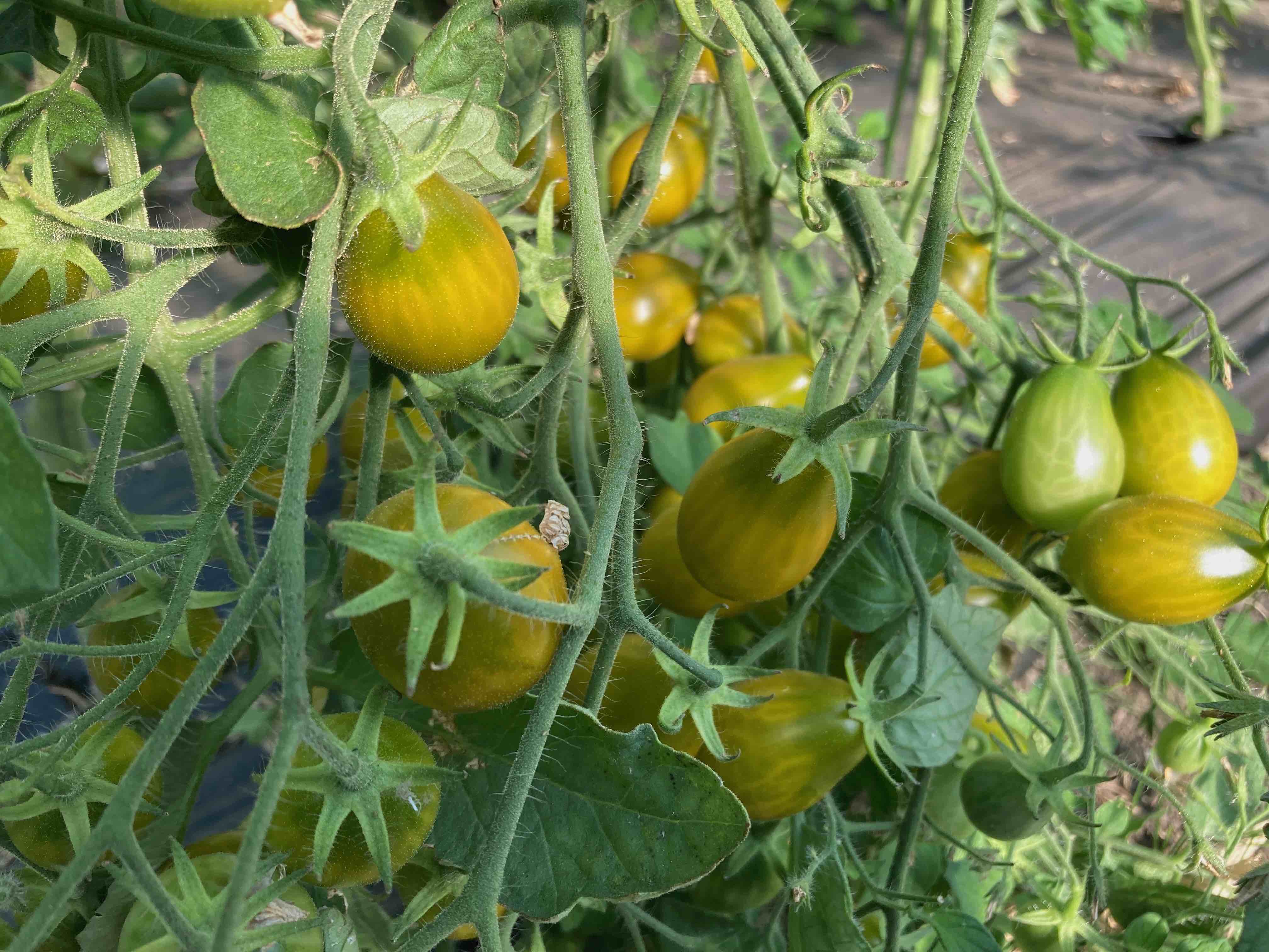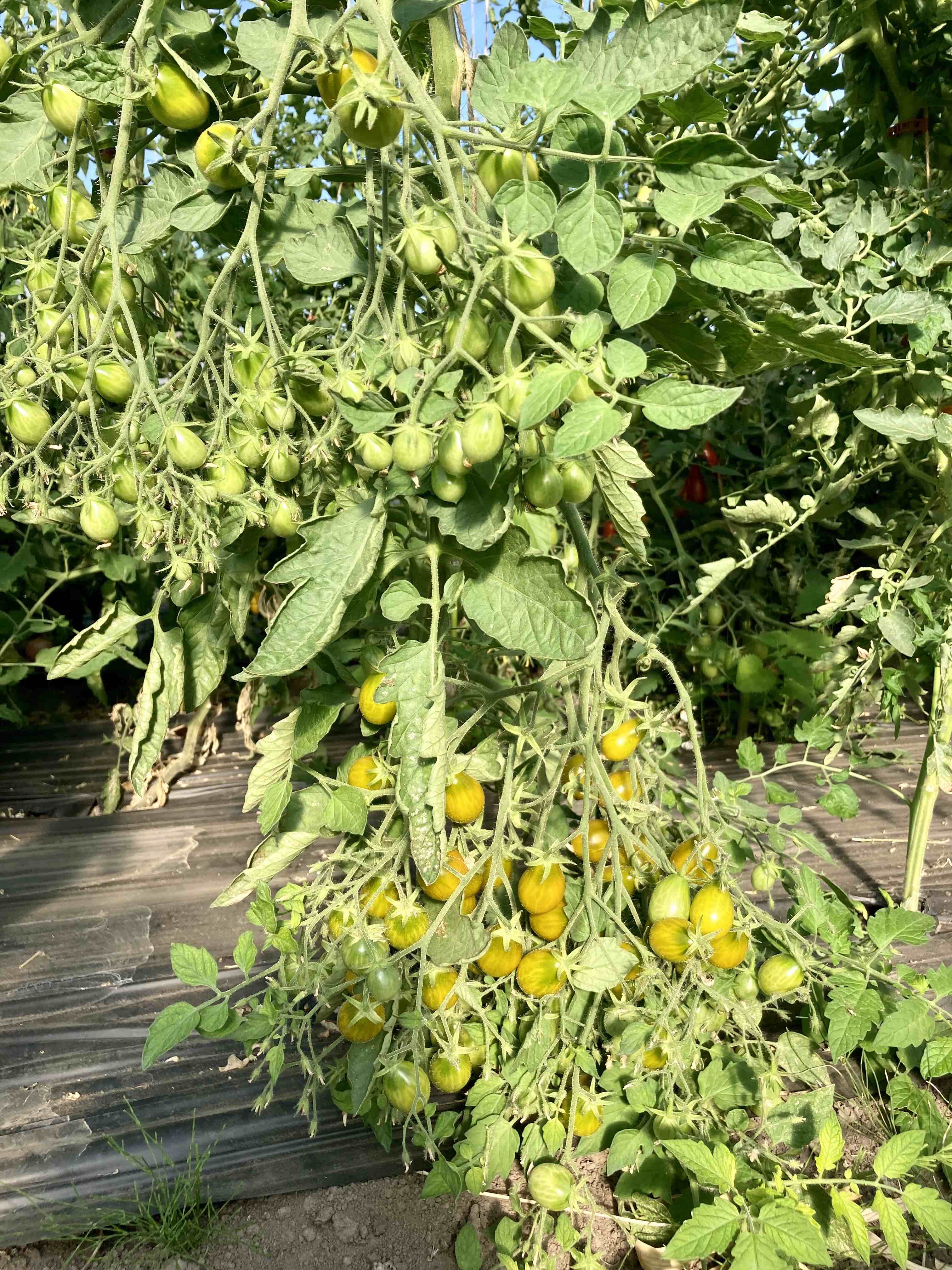 Eine sensationelle multiflorale, grüne, birnig bis ovale Kirschtome mit kleiner Spitze. Aus der Keyes-Serie vom Züchter Blane Horton aus den USA. In weit verzweigten keyes-typischen Rispen wachsen sehr viele, in der Reife grün-gelbe Früchte von 20-30g mit vorzüglichem Geschmack. Bei Multiflora-Sorten gerne alles ausgeizen und nur einen Stamm führen. Dann werden die Rispen schön groß. Wüchsig bis mindestens 180cm.