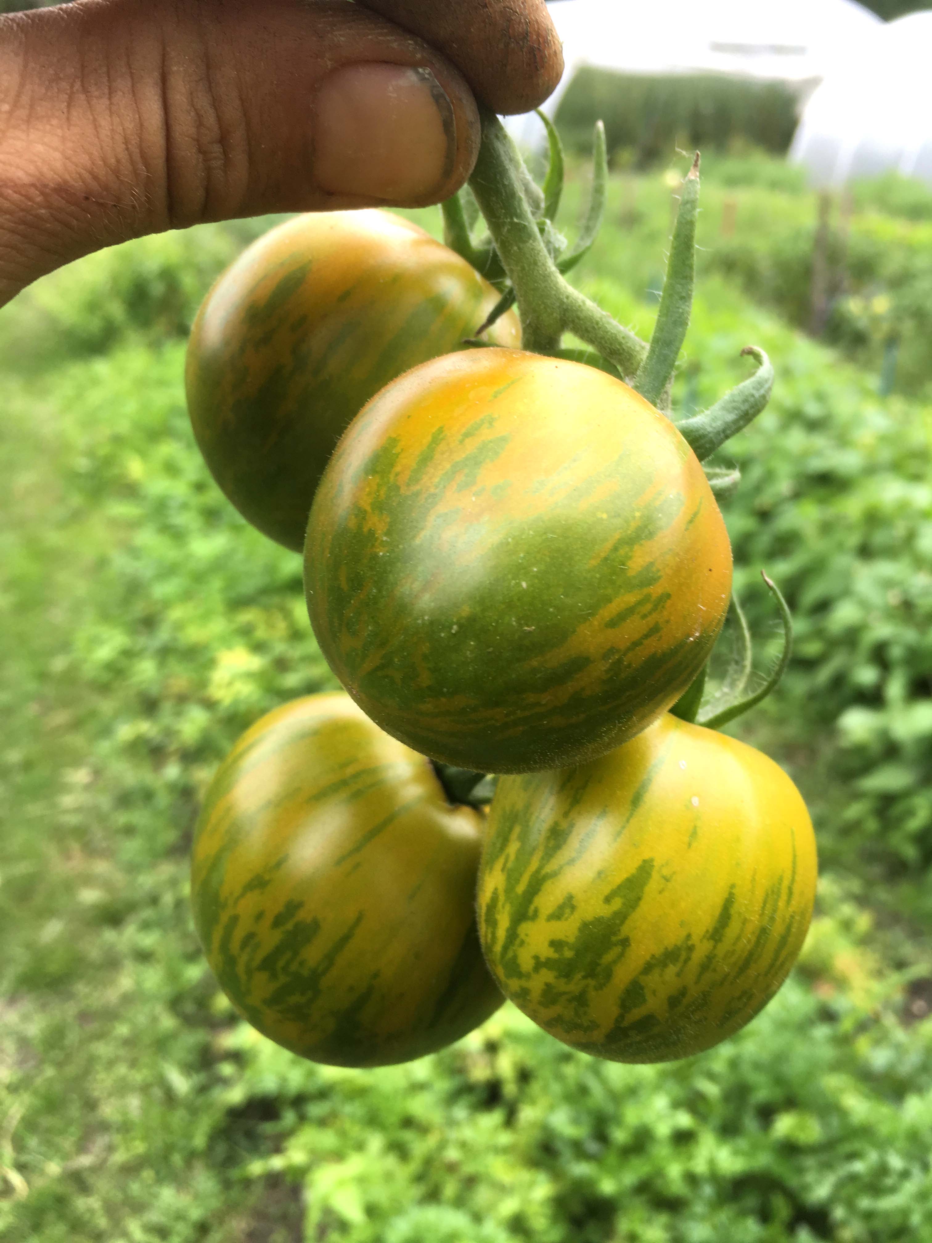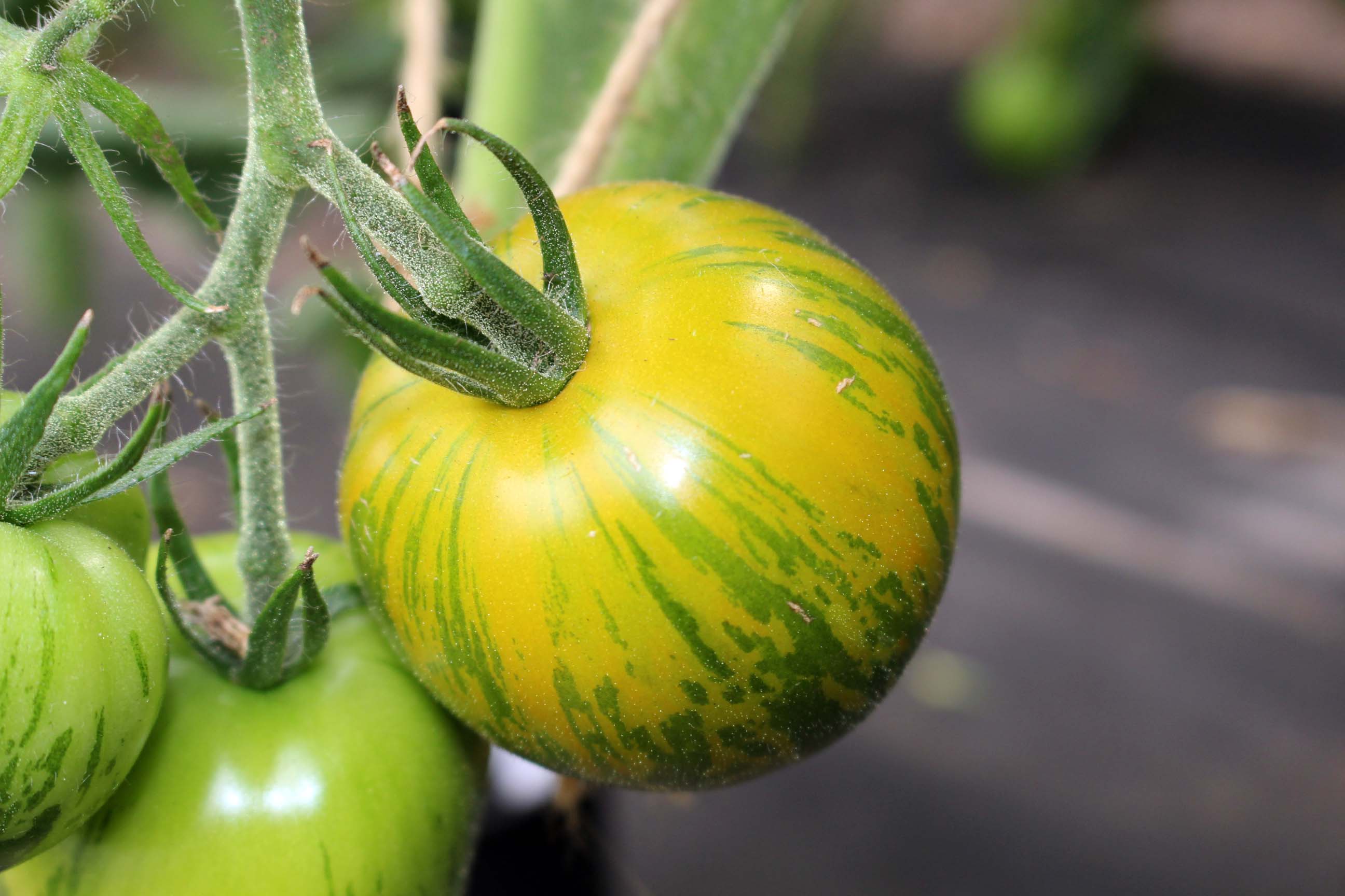 Die ursprünglich aus den USA stammende Stabtomate Green Zebra, wird ca. 1,80m hoch, ist wenig krankheitsanfällig und recht ertragreich. Ihre normalgroßen Früchte sind namensgebend grün mit ockerfarbenden Streifen und schmecken würzig-fruchtig, manchmal auch etwas mehlig. Das Erntefenster liegt zwischen Mitte August und Mitte Oktober.