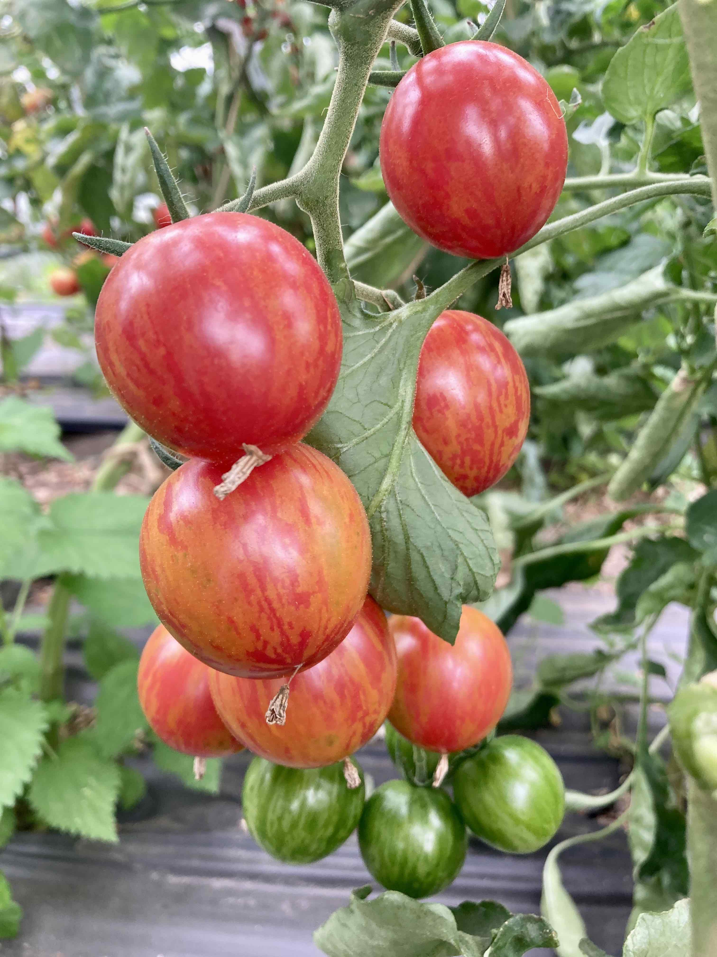 Die wirklich hübsche und aromatische rosa Variante aus dem Bumbleversum. Ausdauernd bei mittlerem Ertrag und großer Flug.. ähh Wuchsfreude erfreut sich diese Hummel bester Gesundheit. Weniger starkes und dichtes Laub als bei anderen Varianten. Für eine Bumble Bee recht offen im Wuchs. Früchte um die 30-40g mit typisch fester und ewig platzfester Schale, die lange hängen können und werden.