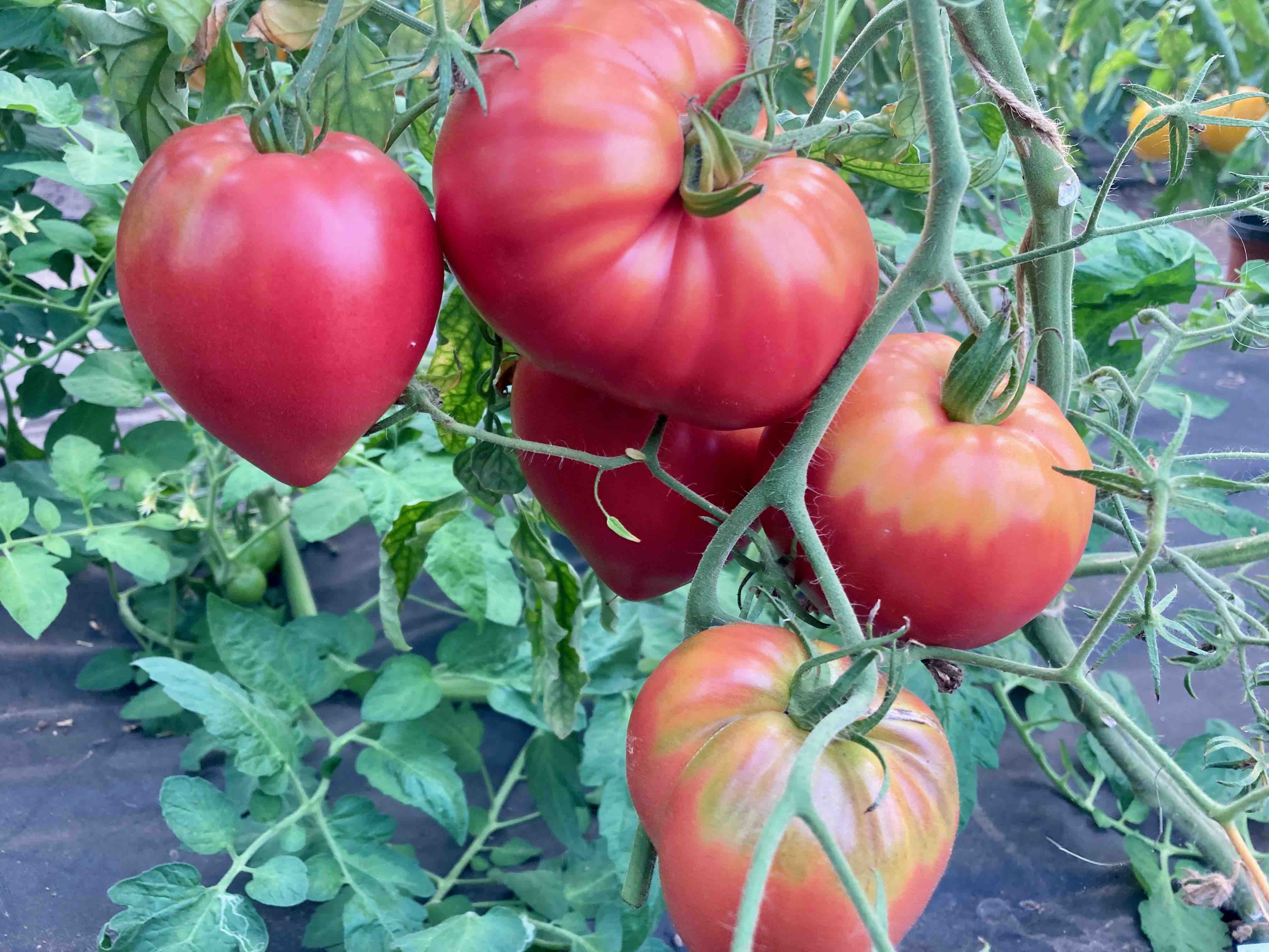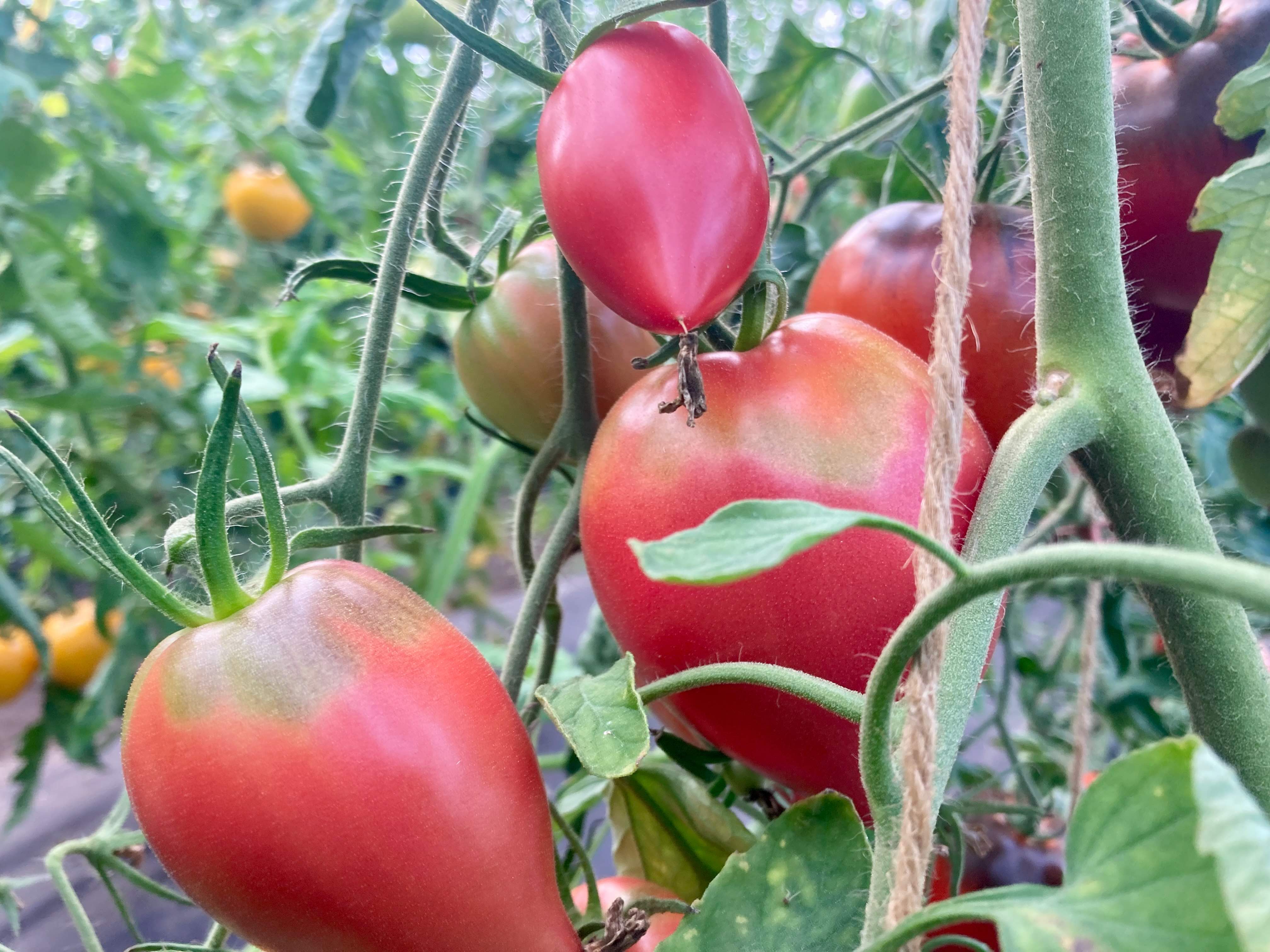 Eher zarte Pflanze mit dünnen Stielen, aber sehr kräftigem und sortentypisch hängendem Laub. Wie man es von vielen herzförmigen Sorten kennt. Unbestimmtes Wachstum, sehr gute Erträge von der Saisonmitte bis zum Frost.