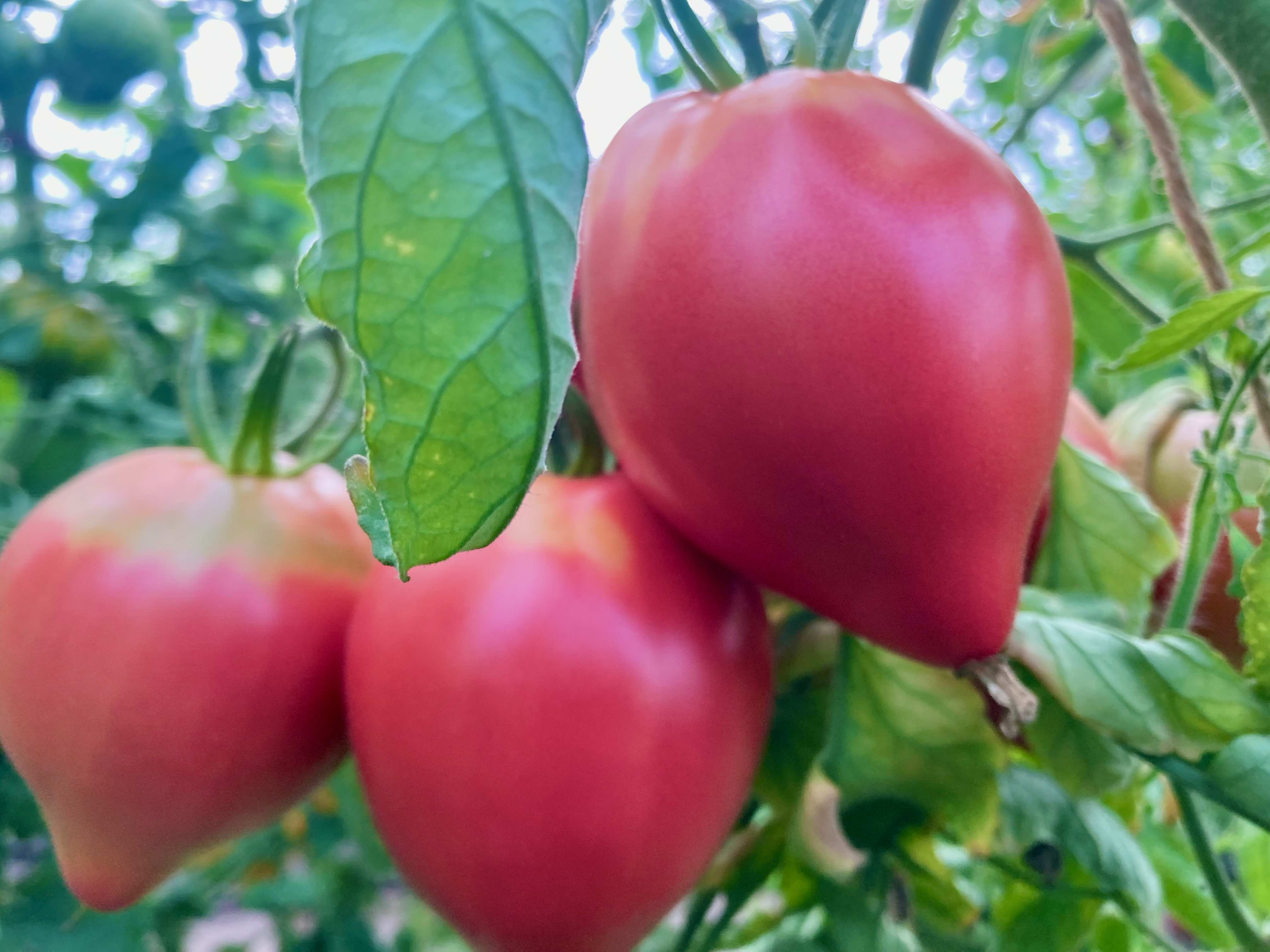 Rosarote Variante mit antocyanen Schultern aus der SGT Peppers-Zuchtreihe. Fruchtig süßes Aroma, hoher saftiger Fleischanteil, zarte Haut. Herzförmige Fruchtform. Fruchtgröße recht gleichmäßig um die 100-120g. Guter bis sehr guter, recht früher Ertrag, mehrtriebiger Wuchs.