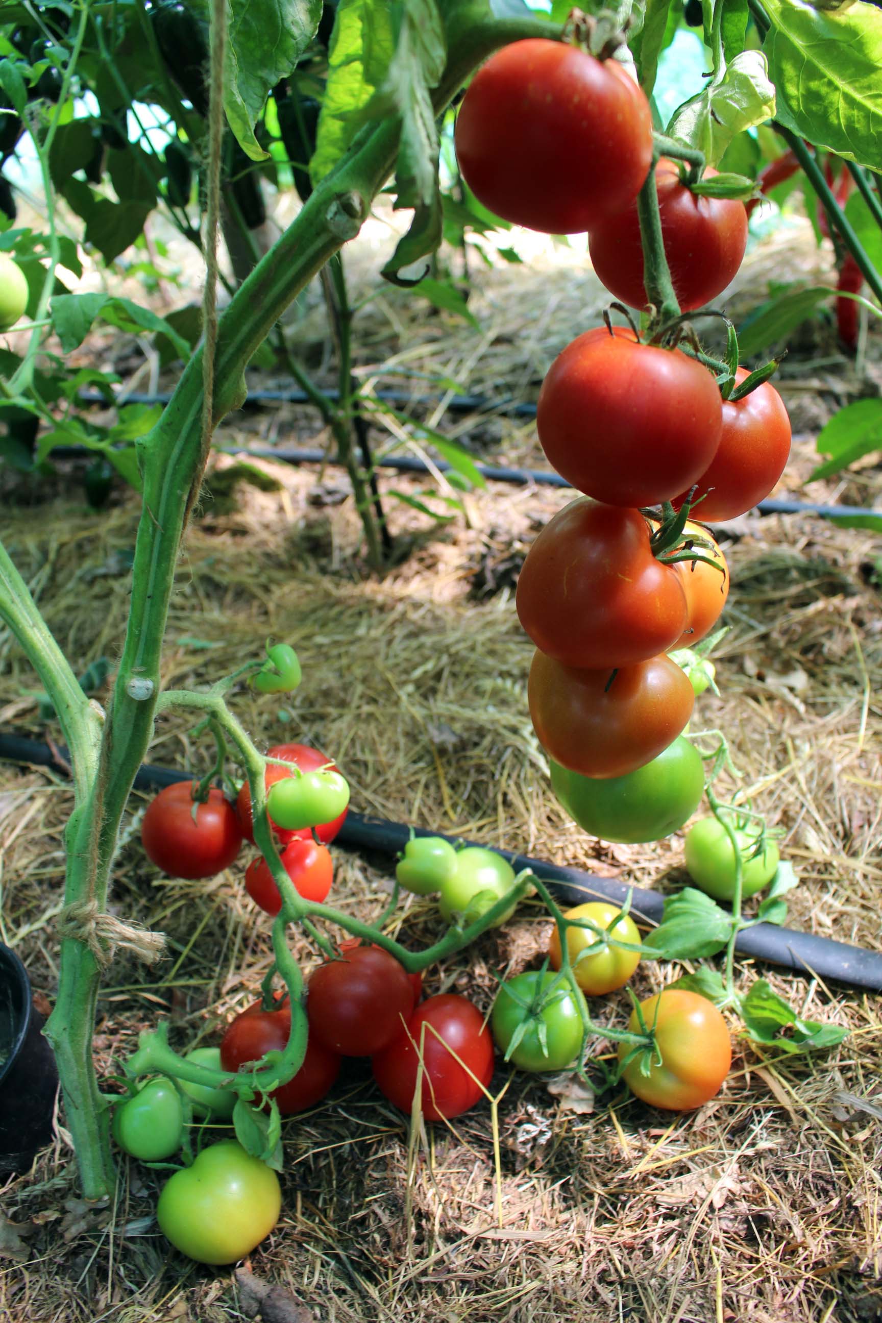 Absolut überzeugende rote bis leicht weinrote, runde Tomate mit wunderschönem panaschiertem Laub. Vom russischen Züchter Ruslan Doohov, der diese Sorte nach seinem Vater benannte. Die Fruchtgröße variiert innerhalb der Trauben (60-120g). Der Geschmack ist solide und tomatentypisch mit einem ausgewogenem Säuregehalt. Bei uns entwickelte sich diese Sorte bisher zweitriebig und wuchs locker auf 1,80m.