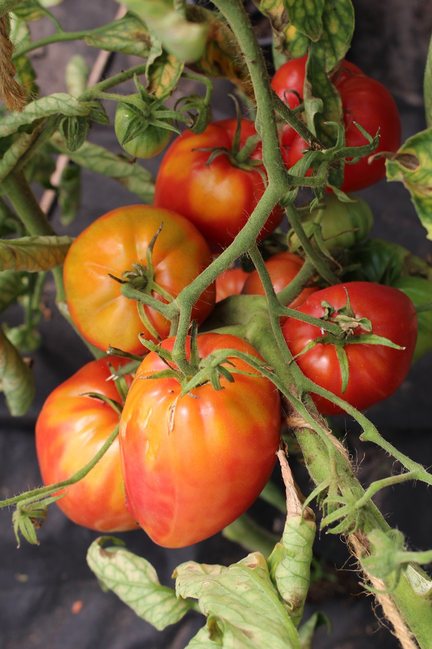 Ochsenherztomaten schmecken immer! Und genießen inzwischen große Beliebtheit. Diese Variante der herzförmigen Fleischtomate hat eine besonders glänzende und glatte Haut in karmesinroter Färbung. Das Fruchtgewicht variiert, besonders schwere Ausreisser von über 500g sind selten und nur in den ersten Fruchtanlagen möglich. Bis kurz vor der Vollreife tragen die Früchte noch ockergelbe Schultern, bevor sie vollrot ausreifen. Der Geschmack ist vorzüglich, süß-fruchtig, fleischig-saftig. Frühreife Sorte, reich tragend, wüchsig. Zwei Stämme kommen dieser Sorte entgegen - Die Früchte werden nicht zu groß, aber ordentlich [150gr], reifen gut und reichlich ab. Eine unserer Liebsten! Liebt das Gewächshaus kommt aber in gut geschützten freien Lagen zurecht.