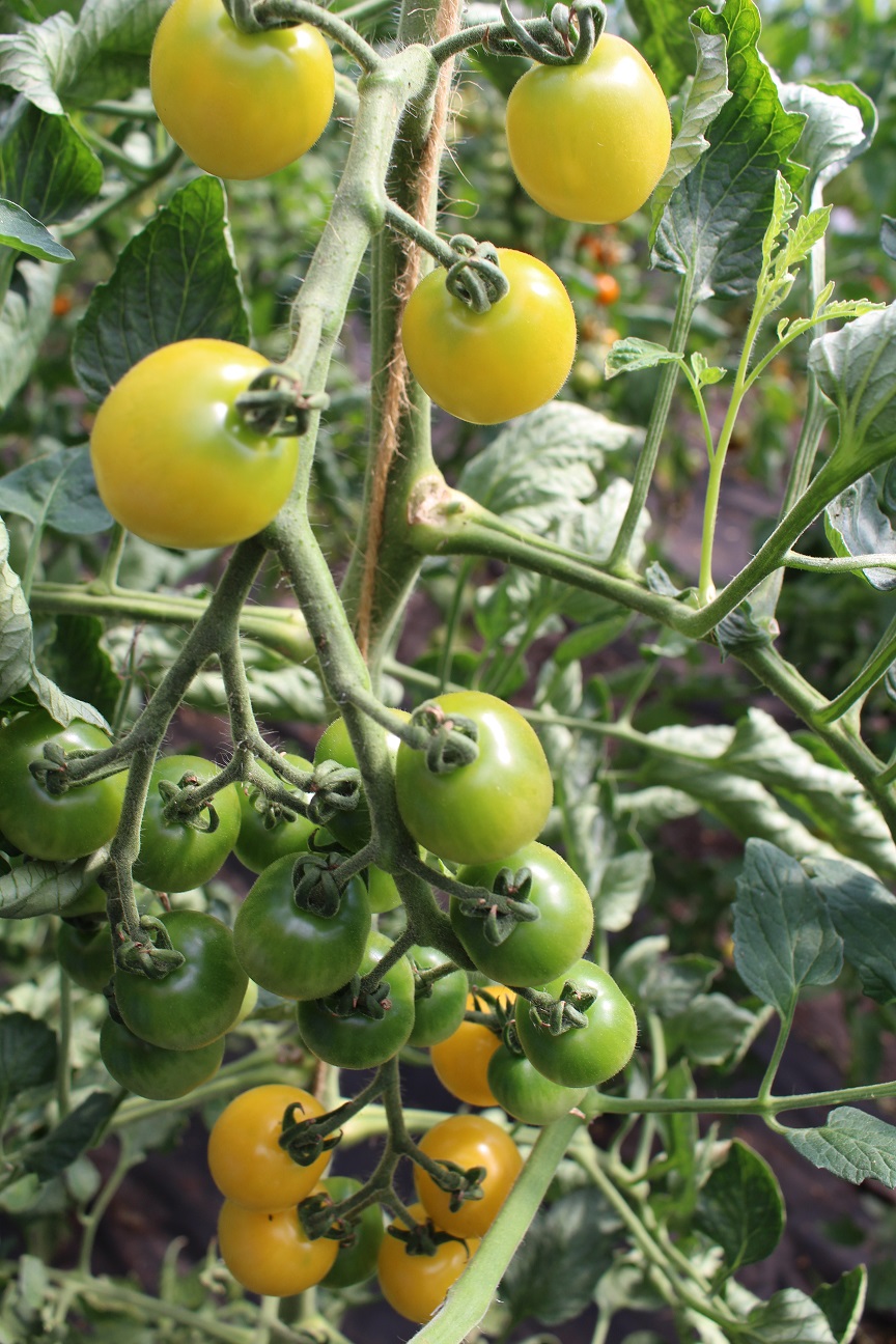 Eine kleine Cherrytomate [20g], die viele sehr süße, cremeweisse bis zartgelbe Früchte produziert. Vollreife Früchte zeigen kleine blassrosa Streifen. Sie kann gut mehrtriebig geführt werden und bedankt sich dafür mit noch mehr süßen Früchtchen. Im sehr feuchten Sommer 2017 hatten wir mit der Pflanzengesundheit dieser Sorte Probleme, dennoch konnte sie alle Früchte ausreifen. In durchschnittlichen Sommern steht Schneewittchen überzeugend im Gewächshaus.