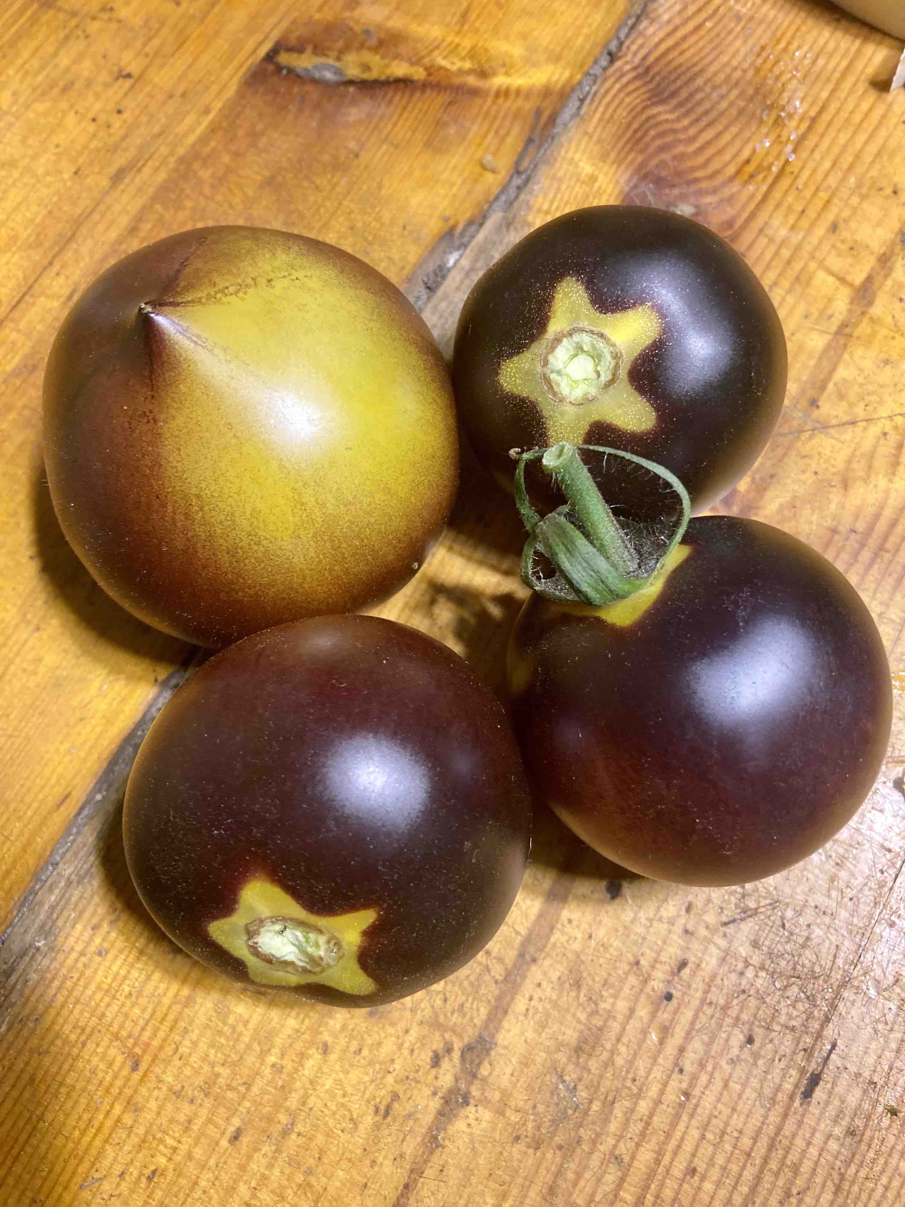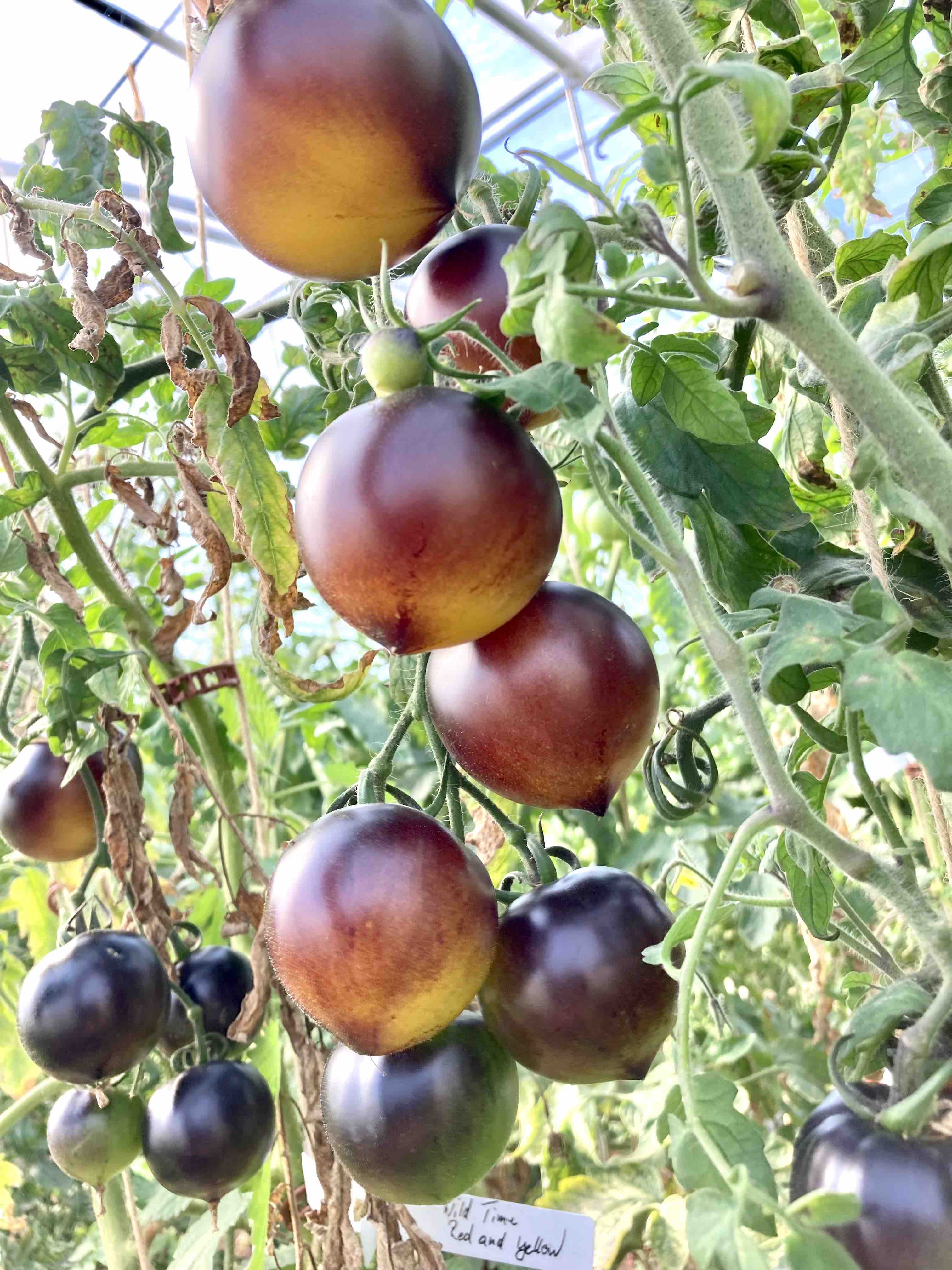 Wie bei vielen sog. Inidigosorten braucht Belle Coeur lange bis zur Reife. Aber die Zeit nutzt sie, um reichlich Früchte anzusetzen. An einem sonnigen Standort liefert sie ab der zweiten Saisonhälfte immer mehr leckere obstartige und platzfeste Früchte 80-100g, die aufgeschnitten oder nicht richtig was her machen.