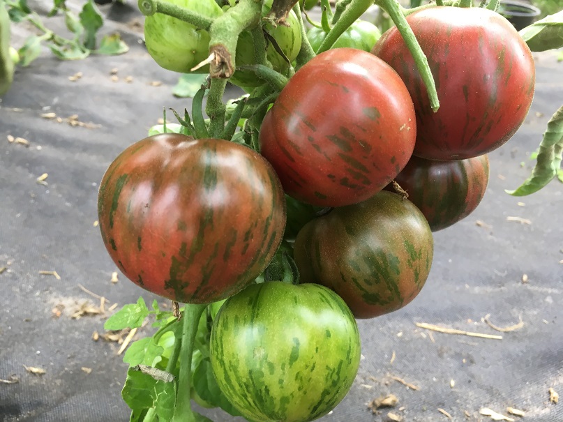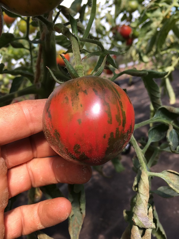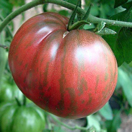 Diese aus Amerika/ Californien stammende alte Sorte Pink Boar entwickelt mittelfrüh, hübsche pink- dunkelgrün gestreifte Früchte. Die Form und ebenso die Größe variieren von normalgroß (60 Gramm) bis zu einigen großen Früchten von über 100 Gramm. Diese alte und historische Sorte schmeckt aromatisch-fruchtig wobei die eher feste Schale weiches, saftiges Fruchtfleisch umschließt.