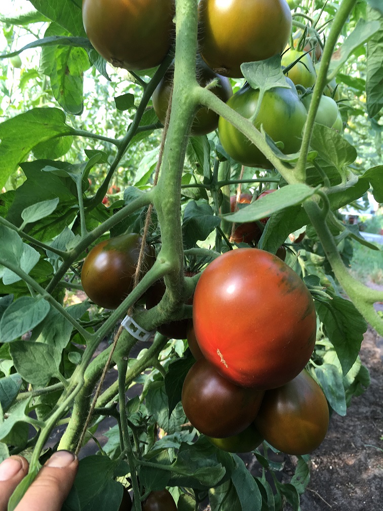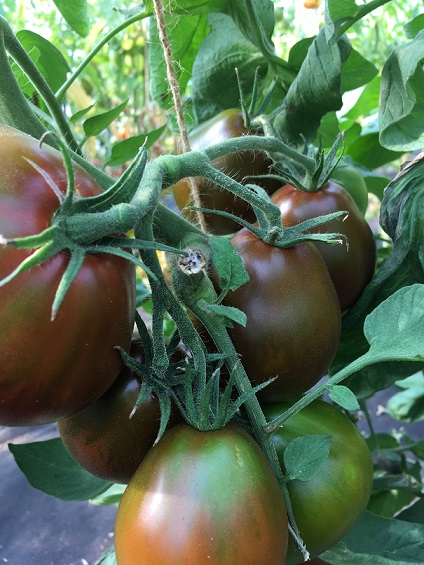 Die Kartoffelblättrige Stabtomate Black Trifele ist eine reichtragende Sorte mit großen (90-100 gr), runden, dunkel rotbraunen Früchten. Bei rechtzeitiger Pflanzung kann ab Mitte Juli mit einem zuverlässigen Ertrag gerechnet werden. Die im Geschmack vorzüglichen Früchte sind sowohl für Salate, frisch aufs Brot als auch für Sugos super geeignet. Eine wirklich tolle Tomate die in unserem Anbauplan auf keinen Fall mehr fehlen wird. Allerding mag es die Black Trifele sehr warm und geschützt. Somit ist sie für den Anbau im Freien weniger gut geeignet.