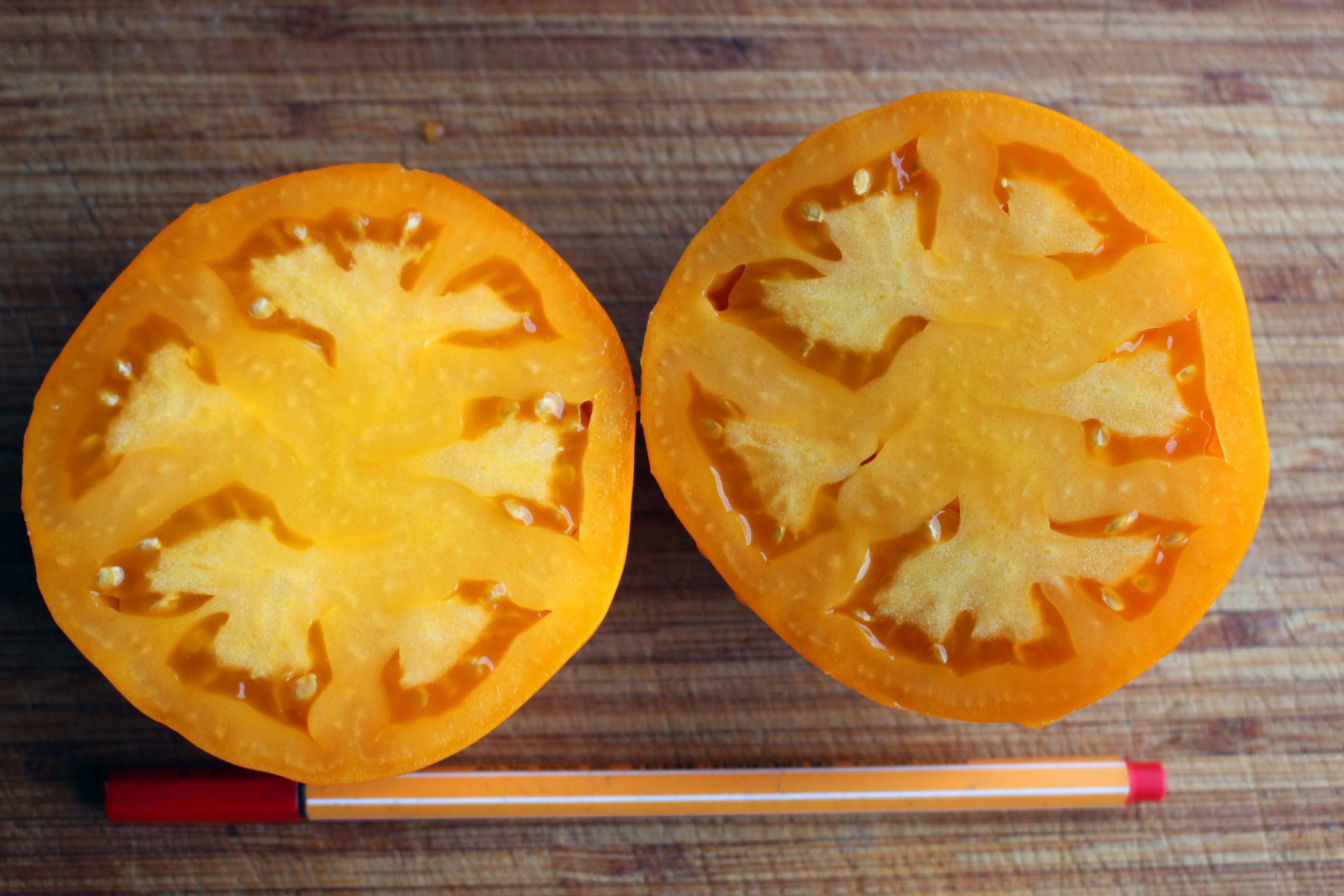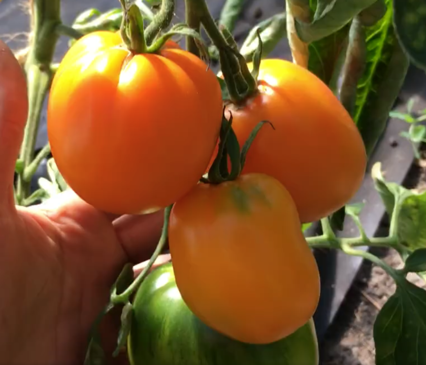 Sehr gute, ertragreiche, russische, orangefarbene Fleischtomate vermutlich aus der Gegend um die russische Stadt Murom im westlichen Russland. Mittelfrüh in der Reifezeit, mittelgroße Früchte von 200-300g, mittelhoher Wuchs von 160-180cm, bei mittlerem Ertrag. Die Früchte sind super schmackhaft und Iljas Haut ist leicht rau und matt, wie die eines Pfirsichs. Die Fruchtform variiert fließend zwischen rund, oval und birnig. Zur Frucht: sehr fleischig und saftig, süss-fruchtig, schnittfest und ziemlich platzfest.